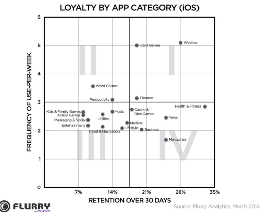 There’s other retention metrics like (Week 1, Week 4, Month 1 etc) that are also helpful for benchmarking but I haven’t found too many good benchmarks around here. However, some back of the napkin math from D1,7,30 and combination with DAU/WAU can help get close to the numbers. Here is a helpful chart (from 2016 data):